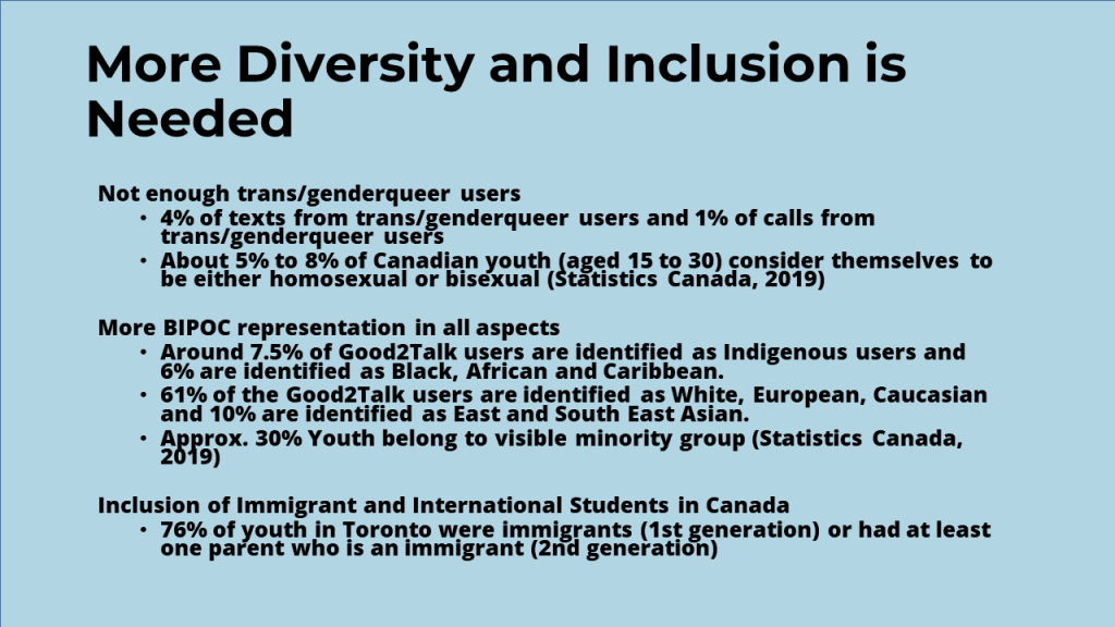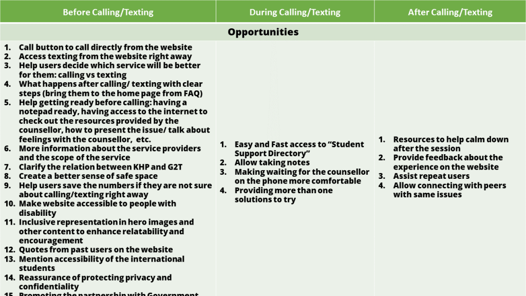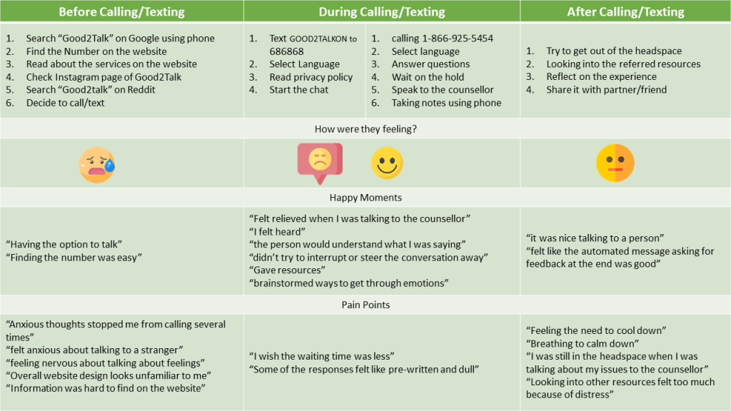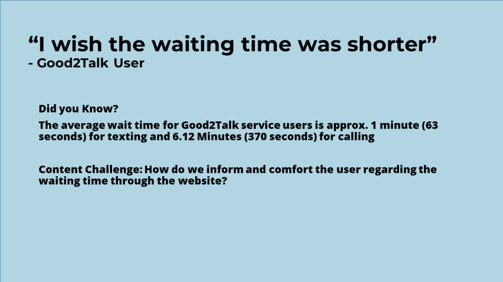 Good2Talk, a service offered by Kids Help Phone, provides free, confidential support services for post-secondary students in Canada. The project aimed to develop a sustainable digital solution for Good2Talk’s primary and secondary users that supports them in all stages of seeking mental health support, promotes their agency in seeking help, and encourages them to continue their mental well-being journey.