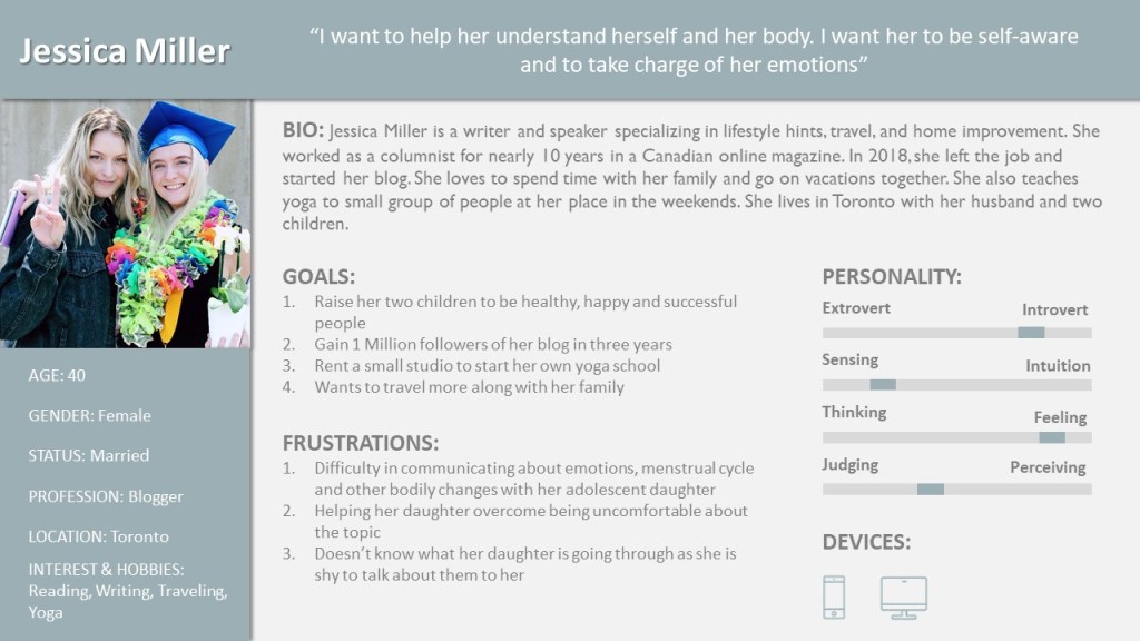 But who am I developing this app for? What are their needs and frustrations? What are their behaviours around technology? Developing personas helped me to put a face to these users and answered these questions for me.