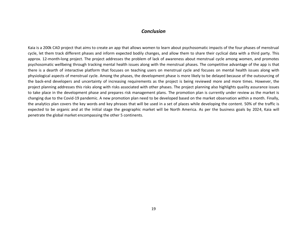 A business-model evaluation of Kaia has been conducted along with project management and an analytics plan for the app. See the report here: